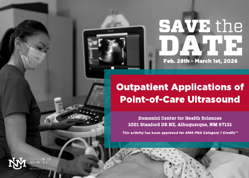 Join the University of New Mexico for the Outpatient Applications of Point-of-Care Ultrasound (POCUS) Workshop, a hands-on, two-day training designed to build practical scanning skills you can use immediately in outpatient care. This immersive course blends focused didactics with expert-guided scanning on live models—perfect for both beginners and intermediate POCUS users.